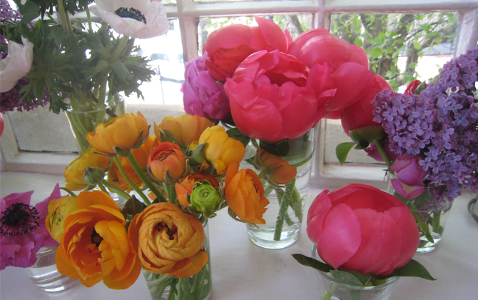 We loved the flowers at the Boden autumn press day, very bright and jolly. The idea of doing lots of different vases full of one type of flower in one colour works brilliantly in big numbers….smelt lovely too.