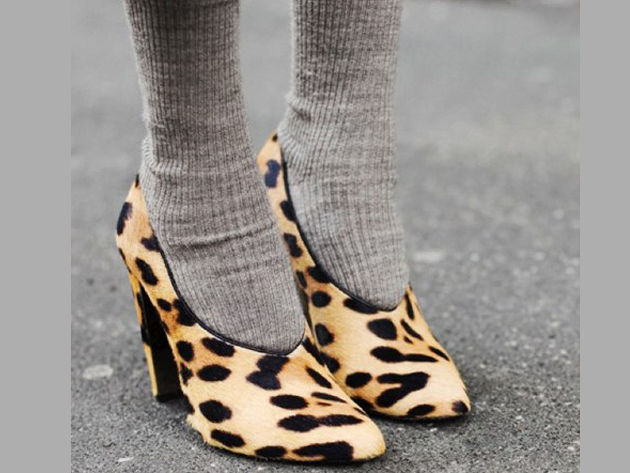 So todays post features an image which is inspiring my wardrobe for Autumn Winter. I have no idea where I got it from but it looks like Tommy Ton from Style.com. So in a long winded way – what I meant to say is – I am loving the grey rib socks/tights contrasting with the leopard shoes and am on the hunt for some similar flatter (and probably cheaper) versions and will be wearing a lot of grey. That is all!