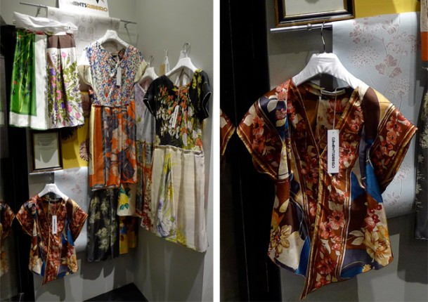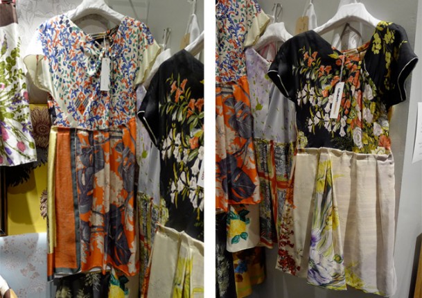 One wonderful highlight was once again in Miller Harris (where we saw Jane Birkin last year). It was a small range of vintage silk scarf dresses and separates by Clements Ribeiro. I think they were made just for the perfumier’s store to celebrate FNO, I can’t find them for sale anywhere on line, but they were quite beautiful. It’s all about the silk scarf at the moment it seems……..