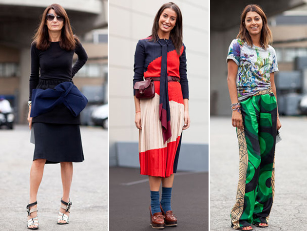 The increasing popularity of streetstyle blogs has seen the outfits worn by the attendees of catwalks shows become almost as important as the collections themselves. The fashion editors in particular have risen to the challenge and rock up with a new fabulous and (often ridiculous) ‘on trend’ outfit every day. Calling this streetstyle is something of a contradiction in terms as it’s unlikely most mere mortals would casually stroll down the street on a September morning wearing one of editor at large Anna Dello Russo’s (seen above on the right) stupendously over the top outfits.