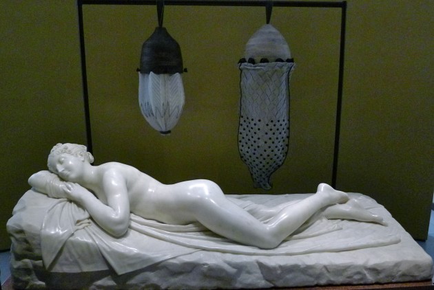 Something not to be missed is the work of 20 graduates from the University of the Arts London, British-Ish, curated by Giles Deacon and featuring these wonderful textile bee hives, which are exquisite seen close up. I’m sorry to say I didn’t write down the student’s name who did them, but the hives have been used successfully with bees already and are beautiful, juxtaposed with the sleeping sculpture in the British Galleries.
