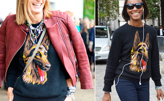The German Shepherd cashmere knit by Balenciaga has been the sweater of choice for fashionistas attending the recent S/S catwalk shows and Top Shop have continued to expand their canine inspired knitwear range.