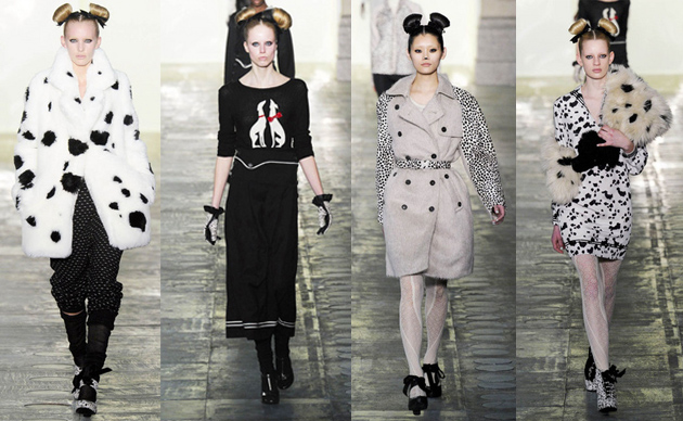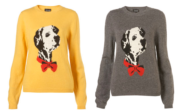 It all started when Top Shop Unique showed a collection inspired by 101 Dalmatians for A/W11/12. More than a little influenced by Cruella DeVil, the black and white canine collection heralded a polka dot revival and dog motif jumpers became a hot new item.