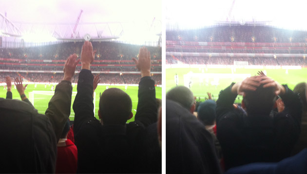 So while I don’t think I’ll ever become a die hard Gunner, or God forbid start watching MOTD, I will take any opportunity I get from now on to go to a live match. Apart from anything else, I love the songs, the witty banter and the stupid comments the crowd shout to the players, “come on mate it ain’t f…..g ard” and “don’t concede” were two of my favourites on Saturday, and I was in stitches when the tannoy announced a substitute for the opposition and the whole crowd shouted ‘who’. The man next to us said, ‘they shout that even when its Wayne Rooney.’