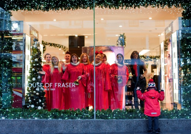 As part of the weekend festivities, there will be a Carol-a-thon, Christmas carols, sung by Carols ( and you if you fancy it) again all raising money for Kids Company. Above is a small selection of Carols warming up in the House of Fraser Oxford Street window this week. Deck The Boughs everybody, it’s definitely Christmas.