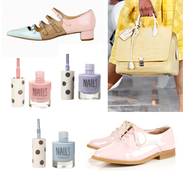 If you simply can’t bring your self to wear anything pastel, you could always try pastel accessories. We love these colour blocked shoes from the new Kurt Geiger Spring collection, pastel nail varnish and patent flats from Top Shop and if you want to spend a little bit (make that a lot) this gorgeous Louis Vuitton bag.