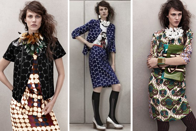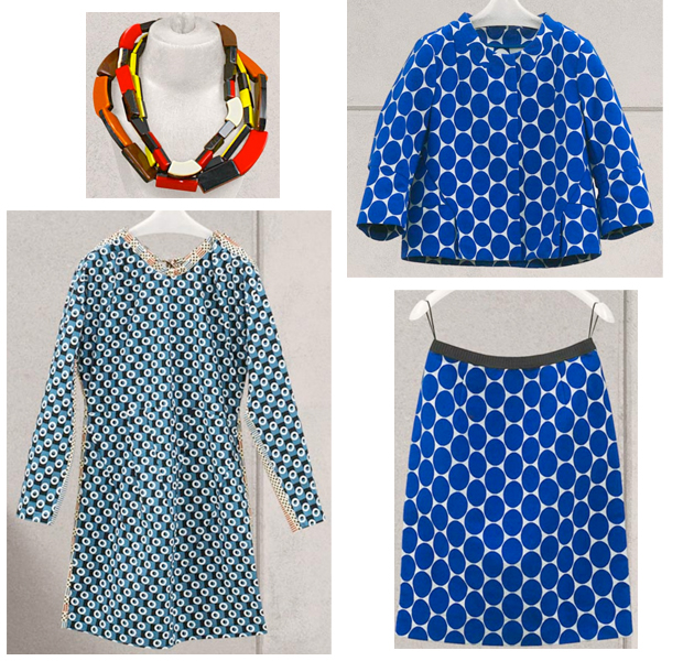 The range was as we expected, perhaps even a little bit nicer. The over size spot jacket and skirt that I bought are in the fabric I had imagined and the jacket has some really nice seam detailing – exactly I would expect from Marni. The mis matched print dress I bought, is good quality poplin and has nice tight fitting sleeves. The styling would suit more or less any body shape and the price points, although higher than Hennes, were a lot less that Marni, so it worked for us. In fact it was a bit like a more eccentric version of COS – who are often more than a little “inspired” by Marni, Helmut Lang and the like!