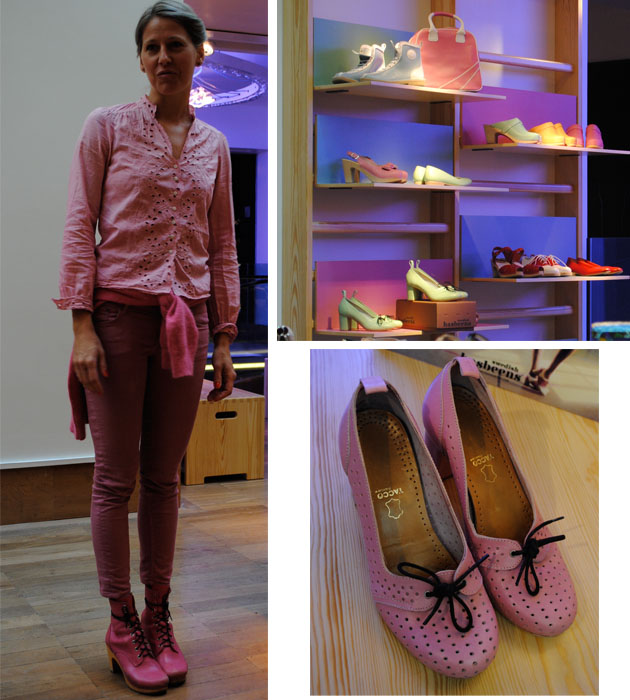 I like the minty green lace-ups but the pink boots are fab. Good to see you both last night – & even more Scandinavian pinkness at the Gudrun shop opening!