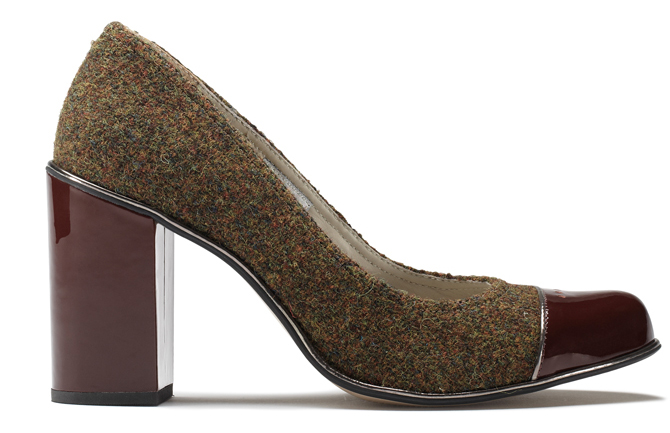 We’re having something of a woolly moment here at TWR, after seeing wool weaves at Solva Woollen Mill last week, we came across a Harris Tweed/ Clarks combo that got my heart racing at the Clarks press day -held in the redundant Aldwych Tube Station (which was a treat in itself, all 40s-wood charm and Brief Encounter signage). I thought I’d got enough brogues, but I think I’ll have to have a pair of these lovely ones, or maybe the tweedy heels below, just to get some Harris Tweed into my shoe wardrobe.