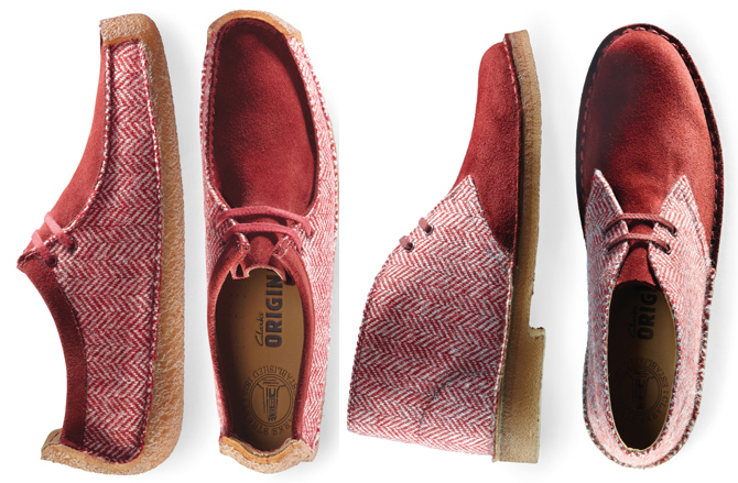 Harris Tweed and Clarks shoes drop into store and online from mid June onwards and prices start from £50 up to £89.