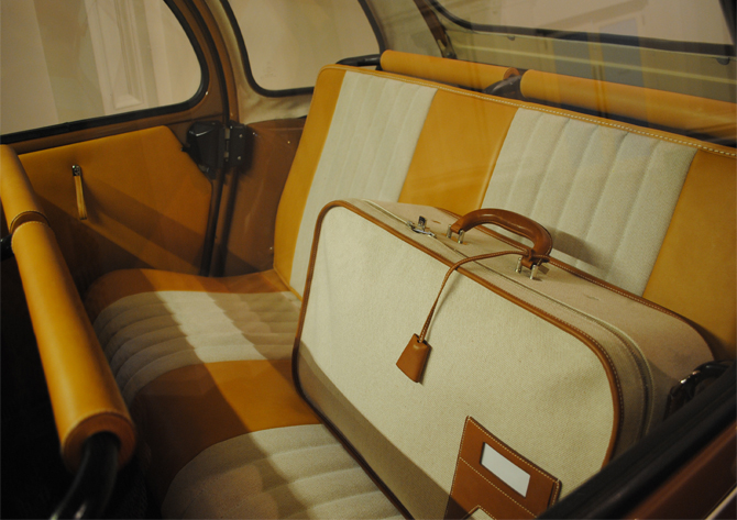 Something you were allowed to take pictures of was this highly covetable Hermès trimmed Citroen 2CV, complete with leather trimmed steering wheel, dashboard and matching luggage. If the keys had been in it I’d have legged it in it.