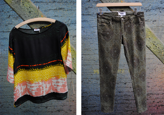 Non Skandi influences included the intricate cardigan from British brand Crumpet, with a beautiful back detail, the cute floral fronted sweater from Parisian brand I Love Leon and the highly covetable paisley printed trousers from Paige denim in ivy. Anthro’ clothes are expensive, but we still love getting inspired by the great way the retailer puts together its looks. This season the range was shown at Elms Lesters Painting Rooms and its boldly colourful walls really made a great backdrop for next seasons colours and textures. Most styles in store/online from July/August.
