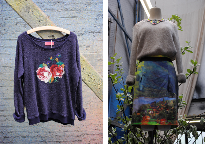 Since the temperature has dropped about twenty degrees in the last week, it doesn’t seem too silly talking about autumn 2012 ranges, in particular the lovely things we saw at Anthropologie. The bought in ranges for autumn (the ones Anthropologie buy in to beef up its own-made styles) have gone all Skandi, which pleases us no end as we are partial to some Scandinavian style, as you all know. The highlights included dresses by Danish brands Baum Und Pferdgarten and Rutzou and this lovely top (below left) by Swedish designer Filippa K.