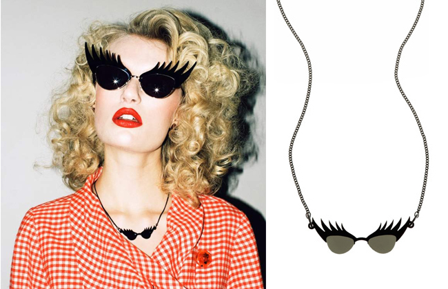 So the sunglasses shape to have this summer is the cat eye – think Rizzo from Grease meets Dame Edna – Tatty Devine have taken this look a step further and added eyelashes – don’t you just love em? They are £126 and you can order them online.