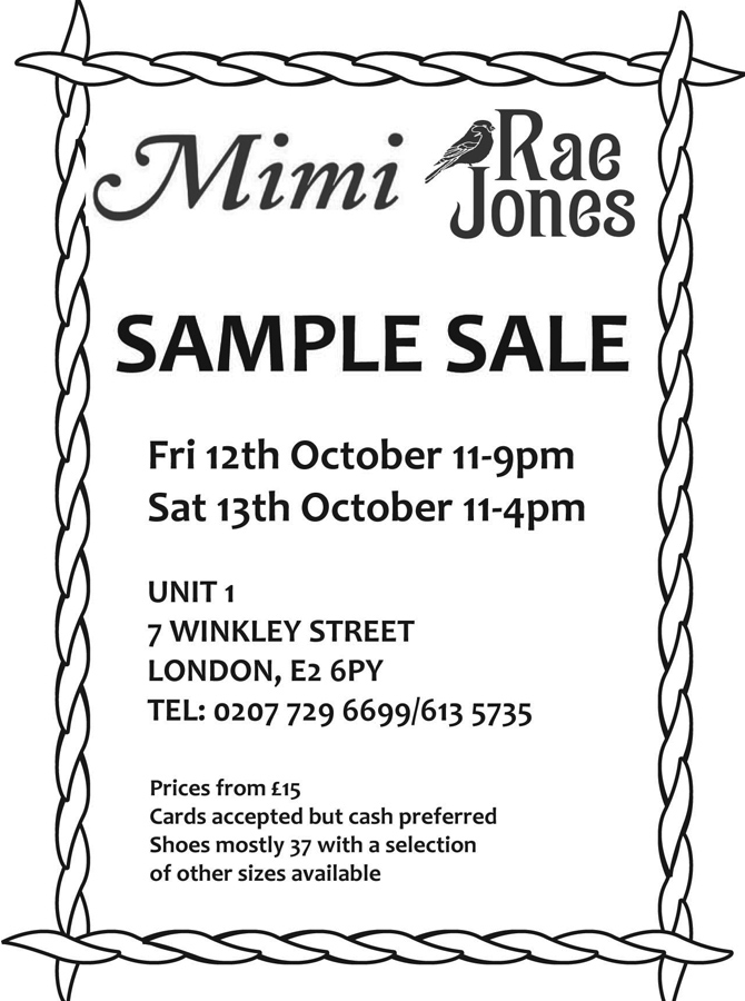 If you live in London, it’s worth checking out the Rae Jones and Mimi sample sale, which starts today.