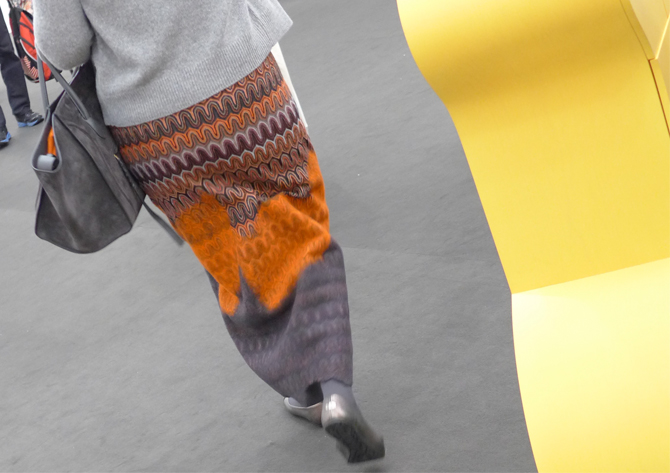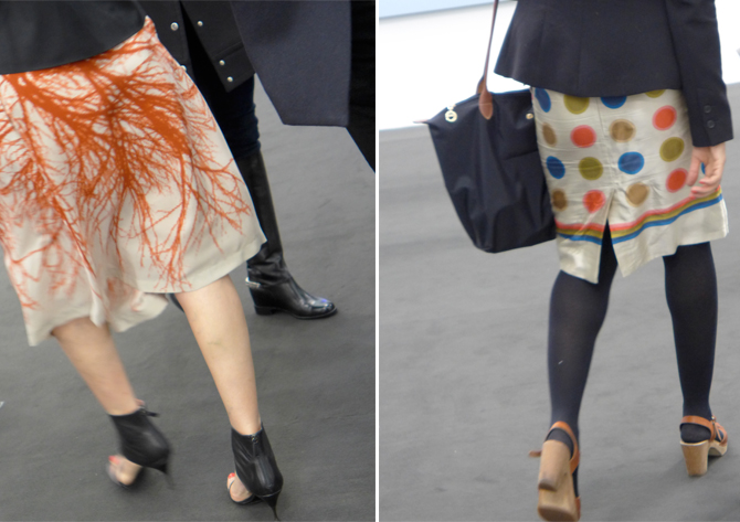 Continuing our Frieze fashion coverage, today we’re showing you skirts. For the last couple of years we’ve seen lots of dresses at Frieze, this year it was much more about skirts and trousers. The average age of women at the opening day of Frieze is well over 30 (discounting the workers) and I’d say it was an affluent crowd too, so it’s a fascinating snap shot of what’s actually being bought, there’s definitely a sense of ‘wearing your best clothes’ about the place.