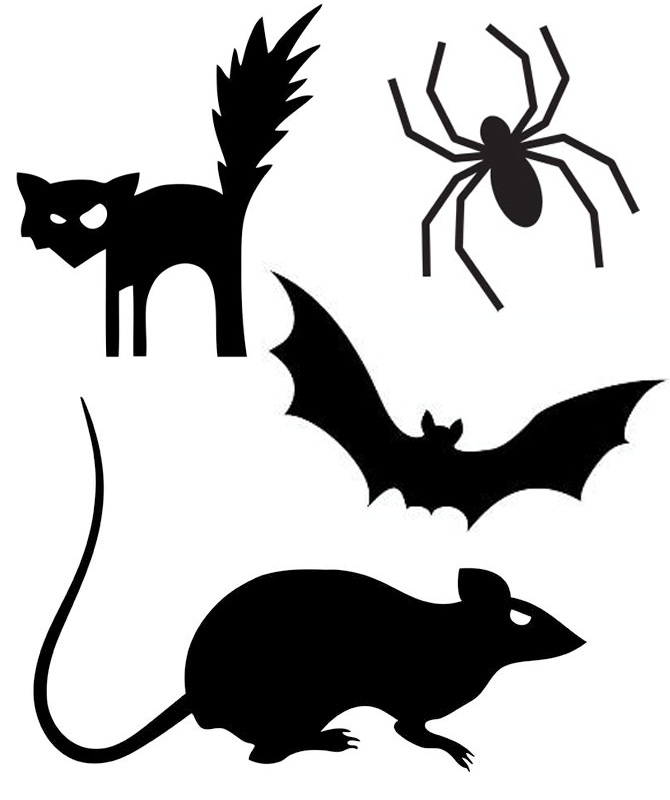 Another easy way to decorate the house is to buy lots of black sugar paper, blow up and print out the below shapes and cut out lots (more is more) of the shapes to stick all over the house. They’ll look great stuck all over your windows with lots of tea lights for maximum spooky effect.