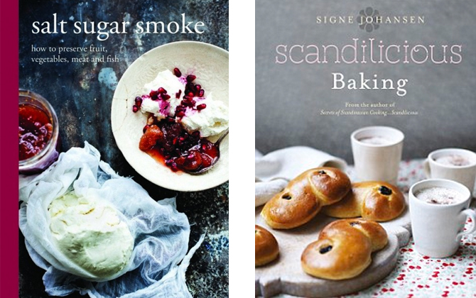 Debora says “The new Ottolenghi Jerusalem, Penguin’s reissue of Arabella Boxer’s Book of English Food (gorgeous spotty end papers), River Cottage, Hugh’s Three Good Things (natch), Polpo: A Venetian Cookbook (of sorts) by Russell Norman, Nigel Slater’s Kitchen Diaries II, Diana Henry’s Salt, Sugar, Smoke: The Definitive Guide to Conserving, from Jams and Jellies to Smoking and Curing, Signe Johansen’s Scandilicious Baking……that pretty much covers all bases.”