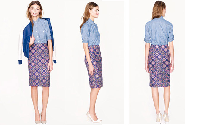 J Crew seems to work on every level for me at the moment (please open that Regent Street shop!!) and my absolute favourite, for look, length, print and price, is their No 2 pencil skirt in Medallion Paisley and I might have to have that chambray shirt to go with it!