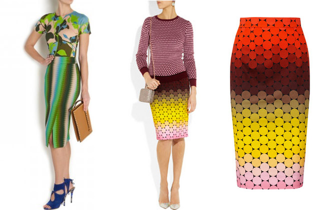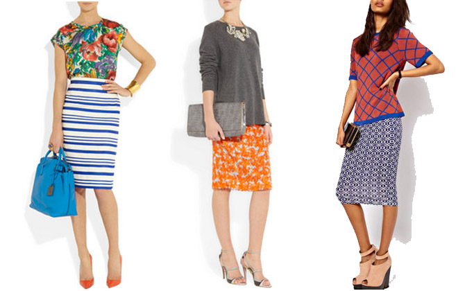 Remember the trophy trousers from last season (I’m going to be adding a plain, bright yellow pair to my collection)? They are still absolutely everywhere, which is a relief (like we really care!). But if you fancy adding a a new “statement item” to your wardrobe, you might want to think about a printed pencil skirt.
