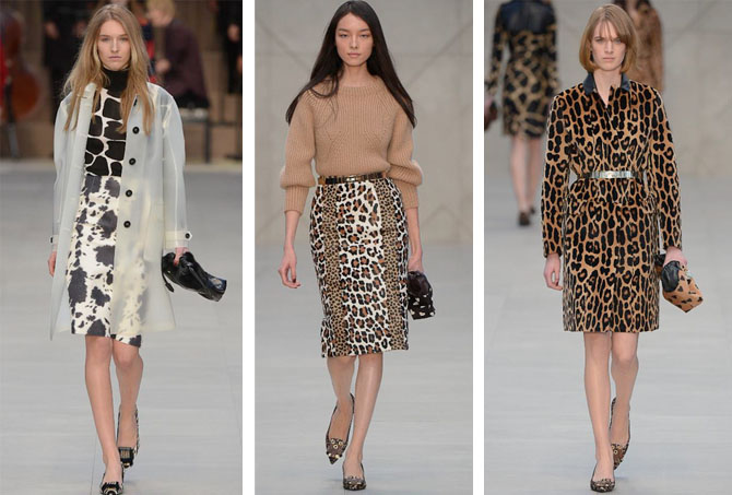 Mixed with neutrals and black, animal print pencil skirts worn with chunky knitwear (tucked in – not an easy look, unless you have the waist of a15 year old) is the look of the season.