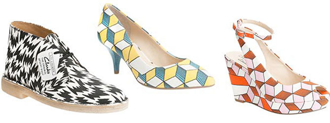 The capsule features three styles – the heel, the wedge and the desert boot – all in statement Eley Kishimoto prints. Prices start at £69.99.