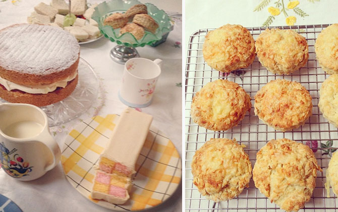 I decided to host my own afternoon tea last week and despite appearances it didn’t take long to make. With the help of my new favourite baking book, Mary Berry’s Baking Bible (it’s one of those go to books, you will use and use), I rustled up some cheese scones and a Victoria Sandwich cake in under an hour. A few cucumber sandwiches, a bought Battenburg (too fiddly – I do have a life) some vintage china and my Grandma’s embroidered tablecloth and the jobs a good un – as they say in the North.