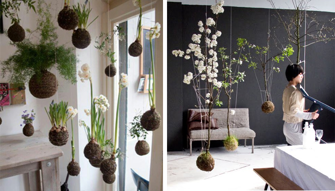 Kokedama (Japanese hanging plants) are the hottest new “thing” plant wise and remove the need for any container at all. A lovely way of incorporating some nature into your home, plants are moulded into a ball of soil, which is then wrapped it with moss or other organic matter – take a look at the below video, if you fancy giving it a go.
