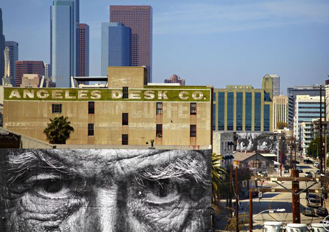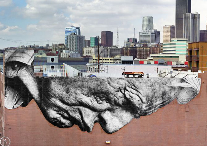 We’re loving these giant sized wall images from French graffiti artist JR, whose global project Wrinkles in the City has attempted to counter the eternally youthful advertising images seen on bill boards and giant screens around urban areas with celebratory digital images of older people, wrinkles and all.
