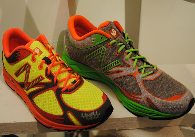 When did everything go so glow-in-the-dark bright? According to New Balance, it’s a trend that has seeped down from fashion catwalk influences, it even has a pair that glows in the dark for night time runs, see below, the 1400 racing shoe in grey or hi-viz yellow. But really I think it was seeing all those Nike highlighter-yellow feet moving so fast on all those Olympians last year….after that, speed=neon.