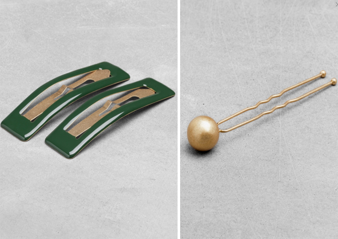 First off, anyone with long hair will love the contemporary and elegant hair accessories, above. It’s very hard to find any good hair clips that aren’t festooned in luridly coloured butterflies or blingy-crystals this season, so I snapped up the simple gold ball hair pins (£4) and smart bottle green enamel slides (£5), there are lots more like this in the website.