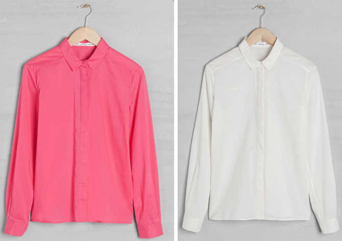 I fell in love with this simple but nicely made soft cotton shirt at £39 in either geranium pink or soft ivory white (not optic-more creamy than it appears in the image above). It also comes in blue but I didn’t see it in store. It has a casual, easy-to-wear simpleness that would fit right in to most wardrobes and I like the minimalist covered placket front. The pink is joyous, but the white would also be very useful.
