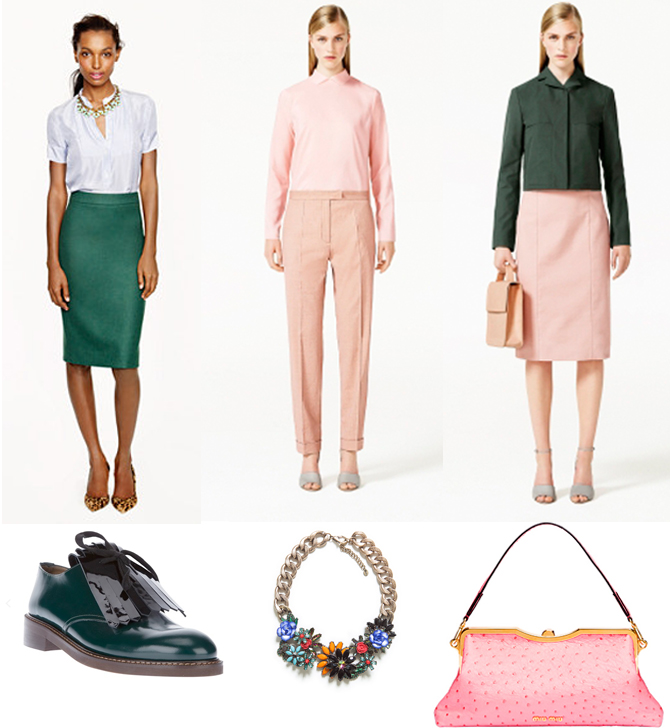 Bottle green, chocolate brown, lilac tones and shades of pink – from salmon through to pastel pink – will be my palette of choice.