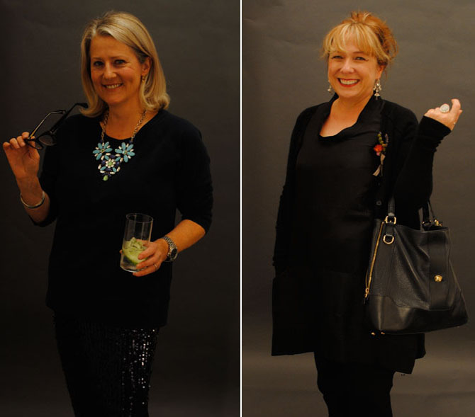 Another great moment came when we met virtual friends we admire, two of whom are above. On the left is the wonderful Maggie Alderson, writer and blogger who tweeted that her life felt complete when Jane Shepherdson checked out her outfit (she’s wearing Whistles). She is wearing what was the hot accessory of the night, the statement necklace. On the right, in what actually might be a coup unveiling for TWR is Helen Walmsley-Johnson, AKA The Invisible Woman, writer of The Guardian’s fashion blog and a very witty users of 140 characters.