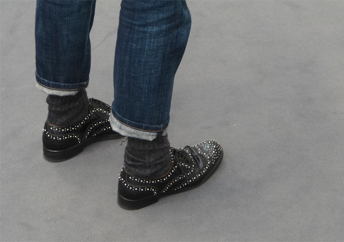 Shoe envy here below, these are Church’s spangly brogues, I can’t justify another pair of brogues, but if I could, I’d have these. Also, I love the school-girl grey socks and perfectly turned up jean hems.