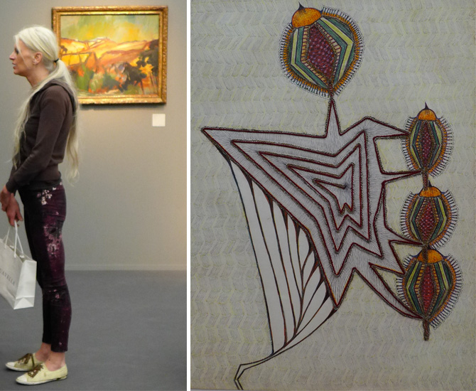 Below is our friend Lucille Lewin, who always looks beautifully turned out, this time in a symphony of blues. Below right is a detail of work by abstract artist Maria Helena Vieira Da Silva from 1953.