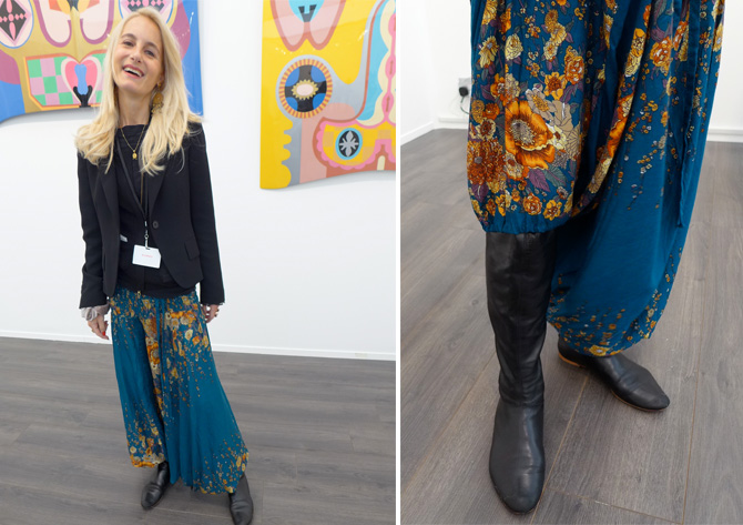 Above is Joan Mitchell, one of my favourite artists, her colour mash-ups are easy to get lost in and she works on big canvases so they make a big impact. There was a lot of colour mixing going on in clothes too, with some lovely combinations of lemons and blues. On the right below is the stylish curator Valerie Napoleone, who wrote this book we featured recently. I LOVE her shoes.