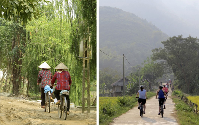 My favourite part of the trip were the wonderful cycle rides we did through the paddy fields and villages of Mai Chau and Ninh Binh. Truly magical and totally stunning, waving at the smiling children, watching rice pickers in their traditional, conical hats popping up from the lush green rice fields, my senses couldn’t take it all in, I didn’t want it to end.