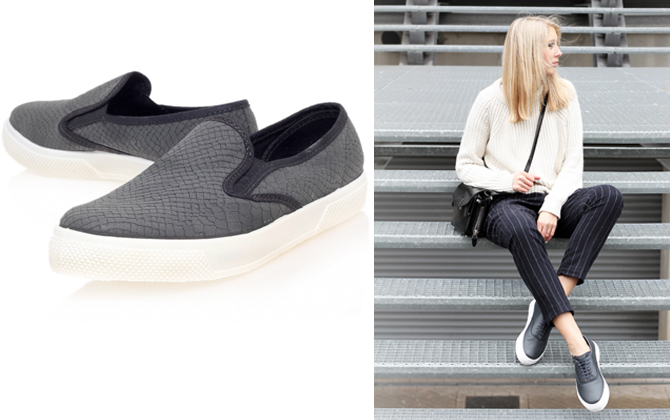 A word of advice on these, by skate shoes, the fashion world mean simple Vans style sneakers, not actual skate shoes. Any mother of a budding Tony Hawkes knows full well, skate shoes are lace ups and worn two sizes too big (many an arguement in a cool skate shop, right there!!) and this is the not the look we are going for.