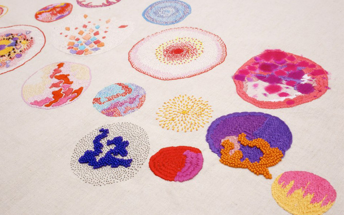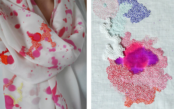 Sabatina LecciaSabatina who graduated from MA textiles Futures (an amazing course) at Central Saint Martins in 2013, is now based in Paris and says she aims to revive the ancestral technique and views the process more as painting than embroidery. She also says she uses her work as an opportunity to meditate and reflect.