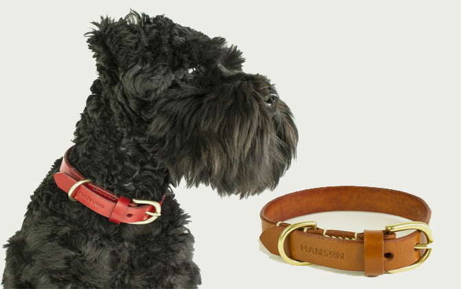 Hanson of LondonHanson are renowned for their exquisitely hand-sewn leather goods and have applied the same values of traditional craftsmanship and understated design to its new range of accessories for dogs. Each bespoke collar and lead is created in-house at their studio-workshop in Shoreditch and personalised lettering can be embossed upon request.