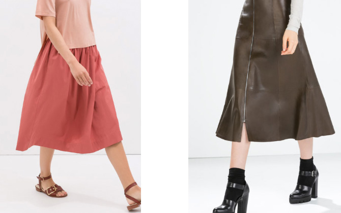 Either just below the knee, or exactly mid calf, the midi can be slim and pencil like, softly A line, or a fuller dirndl shape.