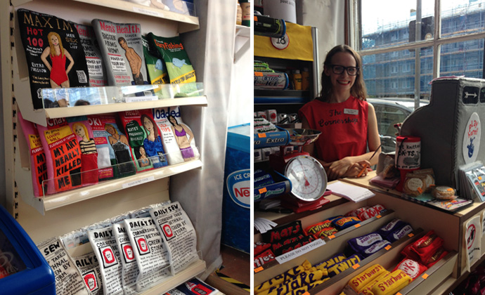 Lucy funded the project on Kickstarter, initially asking for £2000 and ending up raising £10,500. She also got funding from Tower Hamlet and the Arts Council. She thinks her Kickstarter campaign was so successful because it appealed to the inner child. “I think people thought, ‘you know what, I want to see a corner shop made out of felt. I want to see that ridiculous idea.”