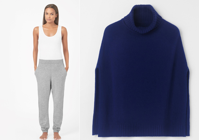 Comfy waistlines are essential in almost-dressed-wear, so check out COS’s wool cashmere leggings, which are not too off-for-a-run like but still shapely. I’ve been given a pair of Hanro silk and wool leggings which are very snugly and can we worn under jeans when it gets cold outside. And the Winser London short cape is the perfect comfy foil to throw over your nightie/PJs to convince the world you are actually wearing day-clothes.