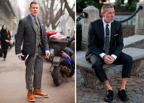 I have been trawling through the latest menswear catwalk collections this week for the day job and have been taken with the number of fabulously stylish older men outside the shows. Obviously they work in fashion so they are bound to be stylish, but I’m struck by the way they manage to combine looking classic and super fashionable without looking contrived.