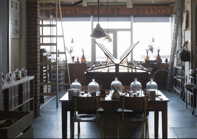 I don’t want to go all gender-focussed (although it is a trend) but Dom’s shop has a pleasantly masculine appeal, it’s a fragrance store men would be very comfortable browsing, which you can’t say about many perfume departments. The distressed industrial feel to the design, the slightly science-y displays, the leather armchairs at the back of the store and the fact that Dom’s origins in design shine through in the gorgeous packaging, graphics and imagery, all make for a refreshingly inspiring fragrance experience.