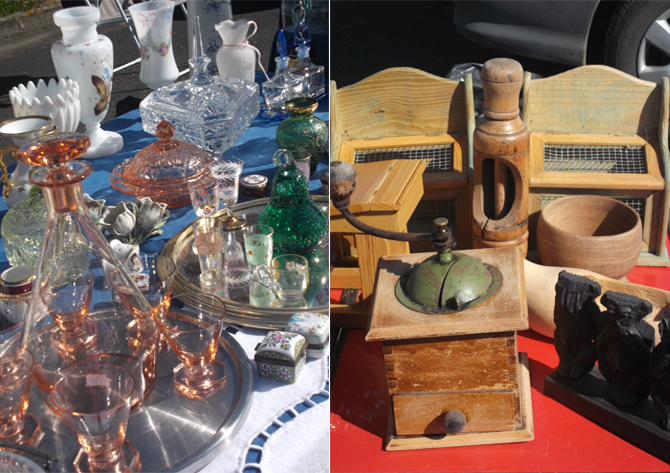 Marginally less exciting but still well worth a visit are local vide-greniers. Attic sales in Anglaise. Here it’s a happy hunting ground for cheap-as-chips collectable household items like Kilner jars, stone-stoppered lemonade bottles and stoneware gratin dishes alongside racks of pre-loved clothes and old Johnny Halliday albums. Of which there always seem to a lot. A sort of Frenchified jumble sale.
