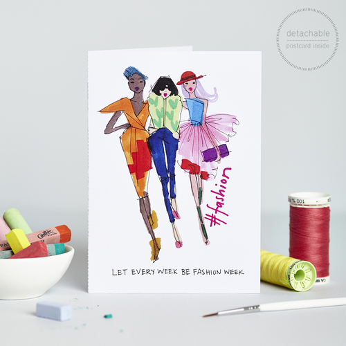 I’ve been in the fashion industry for over 15 years, so obviously this really affects my work too. I’m sure everyone who has ever worked in fashion will appreciate the “pink is the new black is the new….” card. You have to be able to laugh at the industry a little in order to survive it!