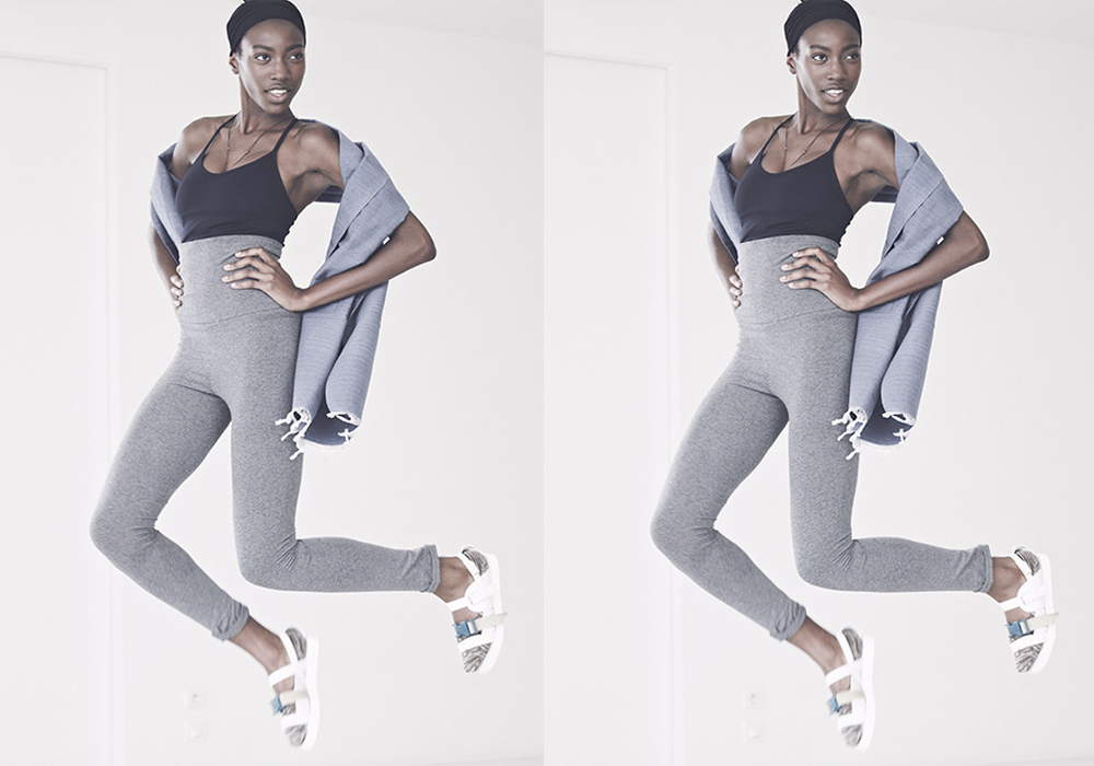 “Yoga wear has changed” she told us, “gone are the days of the baggy hippie harem pants and loose festival t-shirts. Now you’re more likely to find stylish women with their yoga mat under one arm and a green juice in the other. The recent expansion of the fitness industry has seen an explosion of sportswear. As a yoga teacher, I feel a well fitting legging and bra top, covered by a stylish vest is the most suitable option. Then just choose whatever colour or print which makes you feel great”. After which you can throw on an oversized boyfriend sweater or a relaxed, tailored jacket and head off to work.