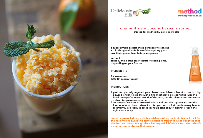 Over lunch Ella told us how she views the products in her home the same way she does cooking ingredients. Why eat super healthily and use horrible chemical products around your house. She is a huge fan of natural brand Method and our lunch menu was inspired by the fresh ingredients – almonds, clementines and pomegranates – in their products.